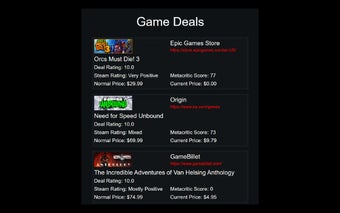 게임 거래는 사용자가 디지털 PC 게임의 최고의 할인 혜택을 찾는 데 도움을 주기 위해 설계된 무료 Chrome 확장 프로그램입니다. 35개의 다양한 사이트에서 데이터를 집계하여 온라인에서 제공되는 최신 거래에 대한 포괄적인 개요를 제공합니다. 이 확장 프로그램은 게임 가격에 대한 방대한 데이터베이스로 알려진 CheapShark API를 활용하여 사용자가 Steam, GreenManGaming 및 Fanatical과 같은 인기 플랫폼의 현재 제안에 대해 항상 정보를 얻을 수 있도록 합니다.